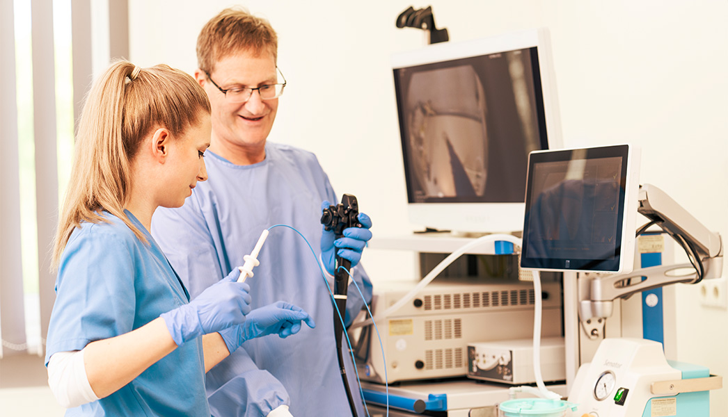 In unserer Endoskopie werden Gastroskopien und Koloskopien mit Entfernung von großen Polypen inklusive Vollwandresektion, Ballondilatationen und Stenteinlagen durchgeführt. Einen wichtigen Schwerpunkt bildet zudem die interventionelle Endosonographie und ERCP.